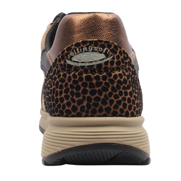 The stylish and supportive Rolling soft shoes from Gabor Shoes combines sporty design with all-day comfort. Crafted with a soft leather upper and suede accents, it features a striking leopard print detail on the heel and tongue for a bold, modern touch. The combination of lace and side zip closure ensures both a secure fit and easy wear. A removable insole adds flexibility for custom orthotics, while the lightweight construction and Gabor Rolling soft shoes technology offer excellent support, balance, and freedom of movement.