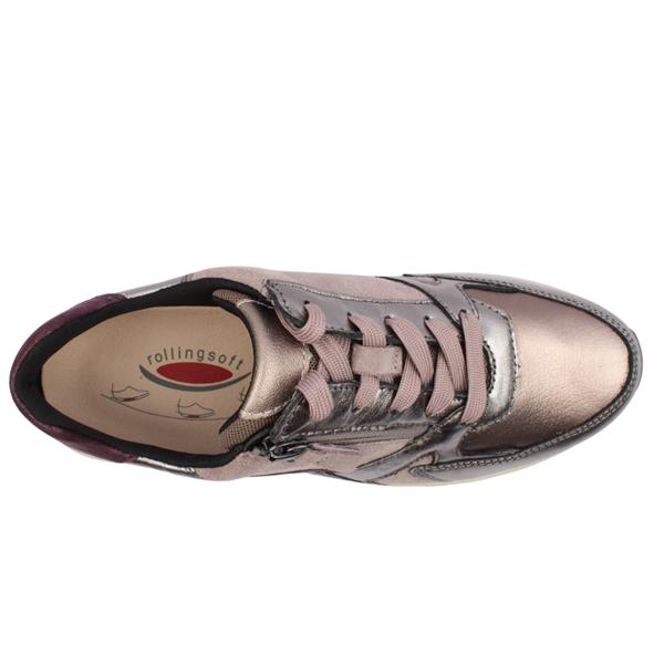 The stylish and supportive Rolling soft shoes from Gabor Shoes combines sporty design with all-day comfort. Crafted with a mix of Metallic Hues and grey nubuck. The combination of lace and side zip closure ensures both a secure fit and easy wear. A removable insole adds flexibility for custom orthotics, while the lightweight construction and Gabor Rolling soft technology offer excellent support, balance, and freedom of movement.