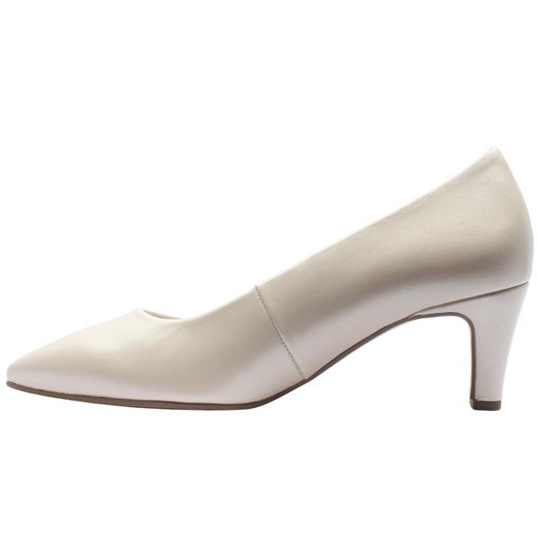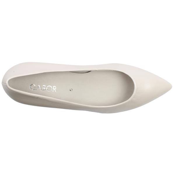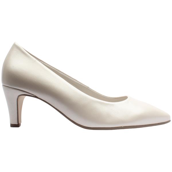 Step into elegance with these Gabor Court Shoes, style 81390. Crafted in a pearlized off white leather upper. The sleek pointed toe adds a touch of sophistication, while the 5.5cm heel provides a graceful lift that is perfect for both day and evening wear. Designed with comfort in mind, this style features a Gabor signature cushioned insole, offering soft support with every step. Whether paired with tailored trousers or a special-occasion outfit, these Gabor heels deliver a blend of chic style and all day comfort.