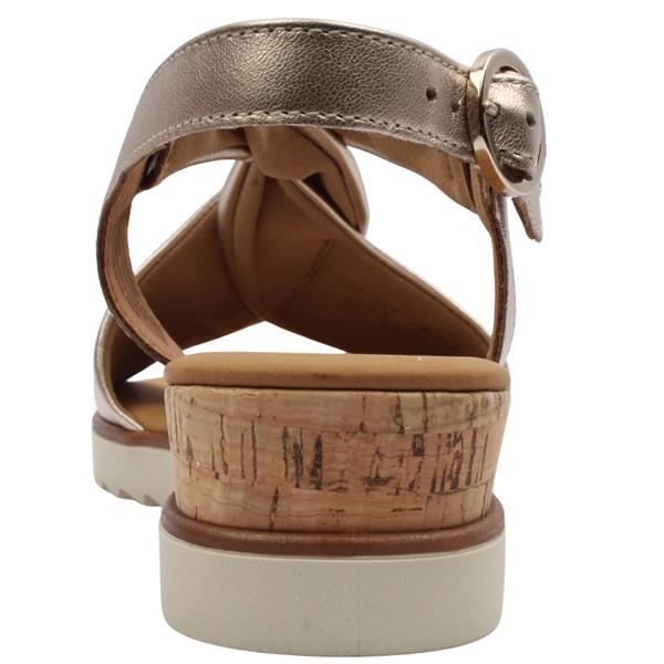Womens sandals from Gabor Shoes. This gorgeous gold leather sandal is perfect for every look a casual outing or a night on the town. The slight heel offers optimal comfort and stability with every step. The adjustable buckle allows an adjustable and secure fit.