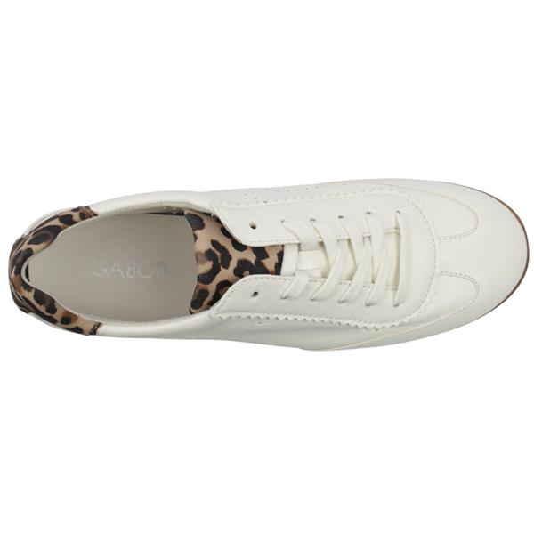 Brand: Gabor Style: 83432 Colour: White Leopard Closure: Lace Removable Insole: Yes Width: 'G' Fitting Heel Height: Approx. 2.5cm Materials: Leather Upper, lining, Insole & Manmade Outsole.