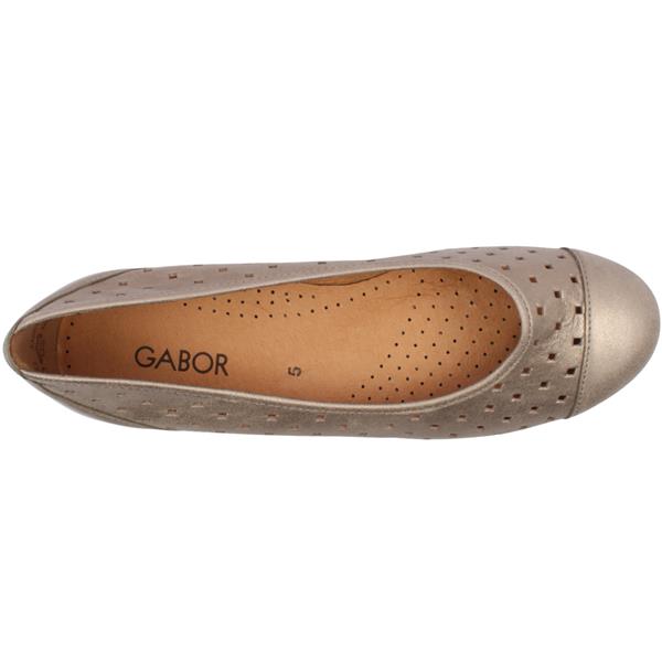 Smart, breathable and easy to wear, these Gabor pomps are a versatile choice for everyday comfort. Crafted from soft metallic leather, they feature an elegant perforated design that allows airflow while adding subtle visual element. The classic slip on silhouette is complemented by a gently cushioned low sole, providing light lift and excellent support without sacrificing comfort. Ideal for all-day wear, these shoes pair effortlessly with both casual and smarter outfits, making them a reliable wardrobe staple.
