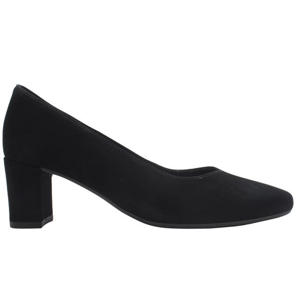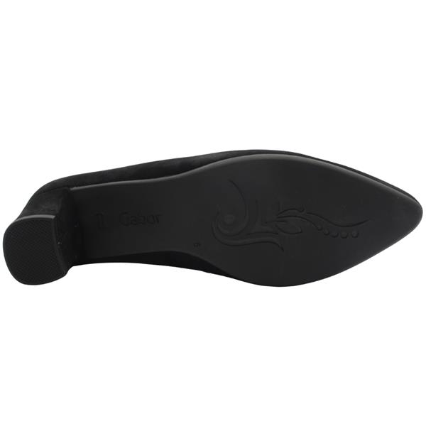 Elevate your elegance with the Gabor Ladies Court Shoes - 72.154 in a luxurious black suede leather upper. Designed with a generous G wide fit, this stylish shoe ensures all-day comfort without compromising on sophistication. The Soft Move cushioned insole and flexible rubber outsole provides exceptional support, while the dressy block heel and the slightly pointed toe adds a touch of refinement perfect for formal occasions or polished everyday wear. A timeless classic with modern comfort, ideal for women who value both style and ease.