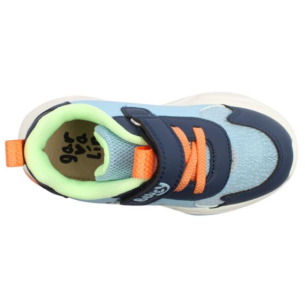 Bluey runners for boys from Garvalin shoes. Featuring a bold Bluey design on the side, this sporty style is perfect for active little ones. The Velcro and elasticated lace closure ensures a secure fit thats easy for kids to manage themselves. the light up sole adds extra excitement with every step.