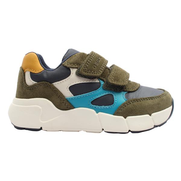 Brand: Geox Style: B566GE Colour: Green Blue Closure: Velcro straps Removable Insole: Yes Materials: Leather/synthetic upper, textile lining, leather insole & manmade sole
