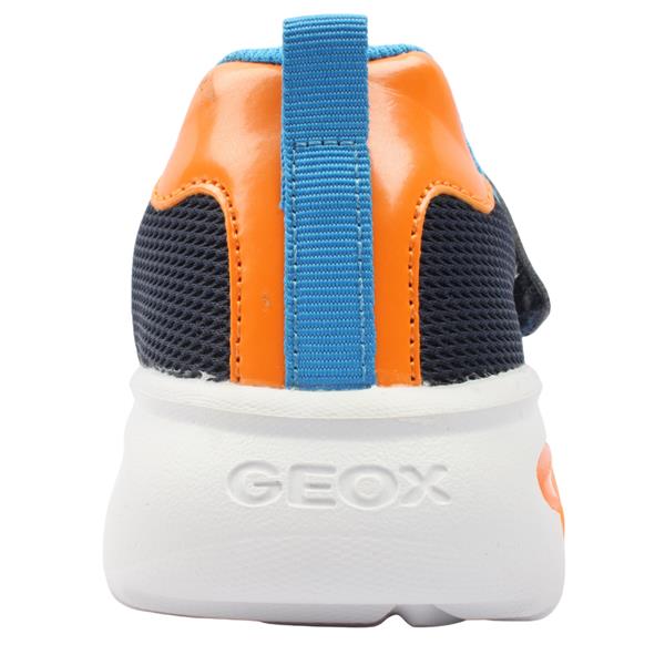 Brand: Geox Style: J45DZC J ASSISTER Colour: Navy/Orange Closure: Elastic Lace and Single Velcro Strap Heel Height: Approx 3cm Removable Insole: Yes Materials: Textile/synthetic upper, leather insole & manmade sole