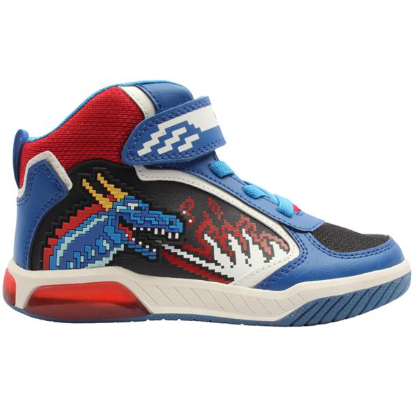Kids boys boots from Geox shoes. These cool Hi-top boys boots are perfect for anyone seeking fun with every step. Designed with a dragon along the side with a fire design. The elasticated lace and Velcro strap are perfect for anyone on the go.