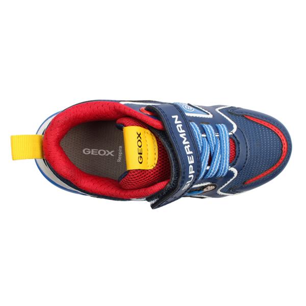 Brand: Geox Style: J56LBD Colour: Blue Red Closure: Velcro Removable Insole: No Materials: Synthetic/Textile Upper, Textile Lining & Manmade sole