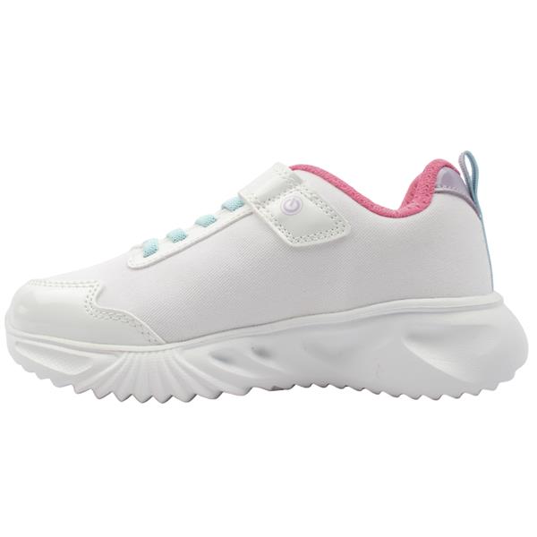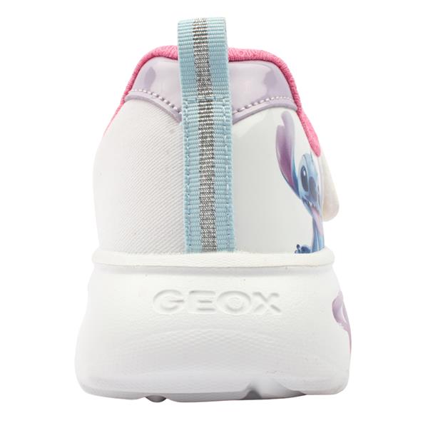Bring light up fun and comfort together with adorable light up girls runners from Geox shoes. Crafted in a white upper with Disneys Stitch graphic and Graffiti text on the side. The flashing lights in the sole can be turned on/off by a switch on the strap of the shoe. The Velcro strap & elastic lace ensure a secure fit on the foot. Equipped with Geox Respira technology, these shoes feature a breathable membrane that promotes natural temperature regulation, keeping feet dry and comfortable.