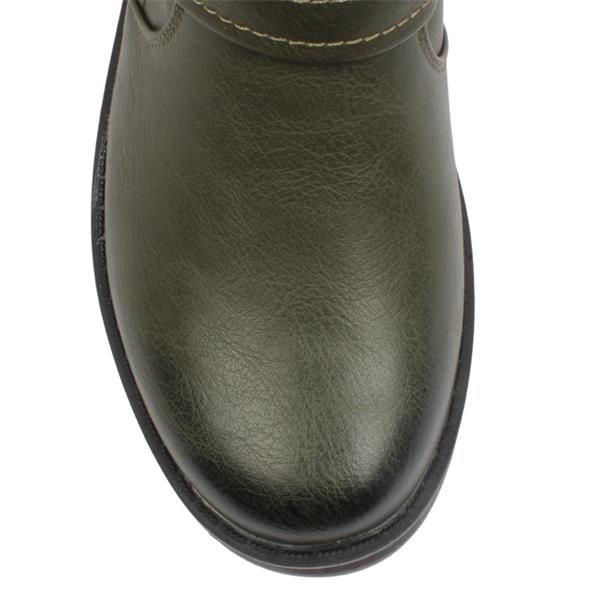 The Heavenly Feet, Hannah4, is a biker-style boot that is also vegan friendly. It is designed with a classic biker boot style, featuring rugged details such as buckles, straps, and a chunky sole. It exudes a cool and edgy vibe. It is designed with "comfiflex " cushioned insoles and supportive features to ensure a comfortable wearing experience throughout the day.