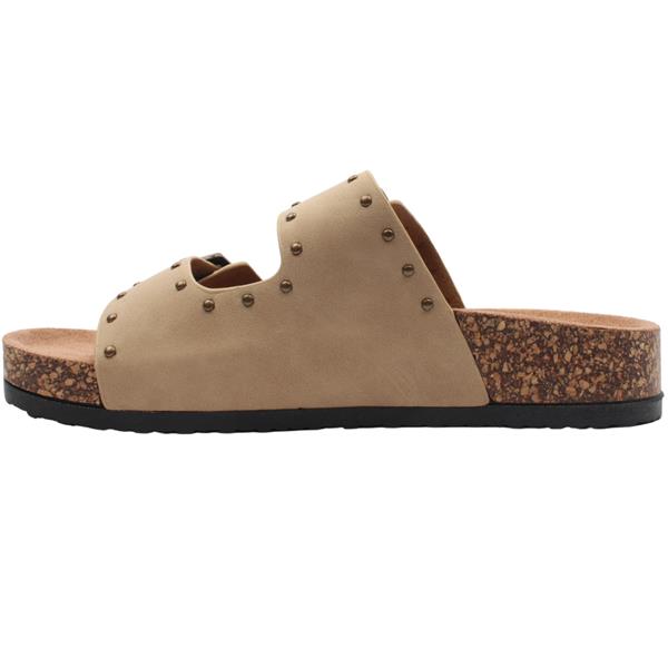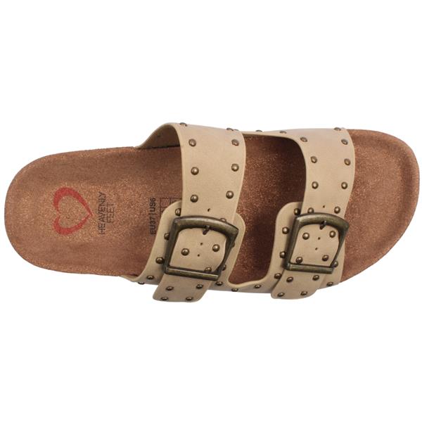 Heavenly Feet Sandals, style Polly in a versatile beige upper with stud detailing, are a stylish addition to your summer wardrobe. The cushioned insole provides unparalleled comfort, making every stride feel like walking on clouds. Designed with a flexible outsole, these mules ensure both comfort and durability.