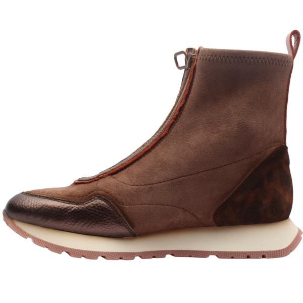 Brand: Hispanitas Style: HI254354 Colour: Brown Closure: Front Zip Height: Approx 3cm Removable Insole: Yes Materials: Leather/textile upper, textile lining & manmade sole