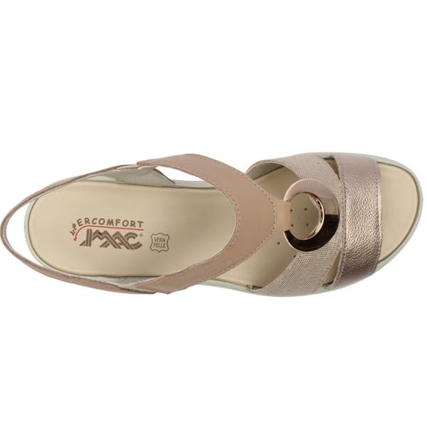 Step into effortless summer style with the IMAC 107970 ladies sandals a perfect blend of comfort and contemporary elegance. Designed in a gold and taupe colour combination, this versatile sandal features a gold metal detail across the front for a subtle touch of shine. The clean, modern look makes it ideal for both everyday wear and smarter summer occasions. Created with comfort as a priority, this style offers an extra wide fitting, providing generous room without compromising on support. The cushioned, breathable leather insole keeps feet feeling fresh and comfortable throughout the day, while the lightweight, flexible outsole ensures easy movement and all-day wearability. Stylish, supportive, and wonderfully comfortable – the IMAC 107970 sandal is the perfect choice for warm-weather dressing.