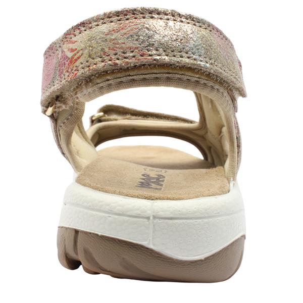 Enjoy comfort without compromising on style with the IMAC 109290 ladies walking sandals in eye-catching gold multi. Designed for all-day wear, this sandal features a soft cushioned leather insole that provides lasting underfoot comfort, making it perfect for holidays andeveryday summer outings. The extra wide fitting offers generous space and enhanced comfort for those who need a little more room. Practical and supportive, the style includes three Velcro straps, with two fully adjustable straps for a secure, personalised fit. An elasticated front strap gently stretches with the foot, allowing natural movement and added flexibility as you walk. Finished with a lightweight, flexible outsole, the IMAC 109290 ensures easy movement and reliable grip, keeping every step comfortable and confident.