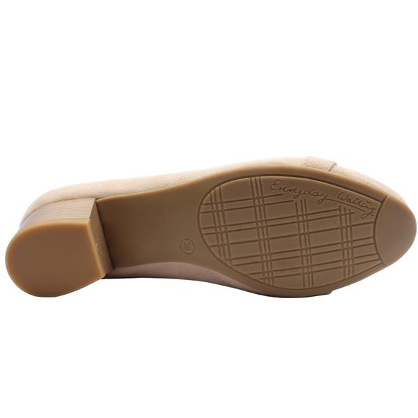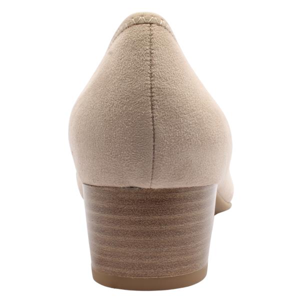 Step out in timeless elegance with womens low block heels from Jana shoes. Crafted with a neutral beige faux suede upper, this versatile shoe is accented with a chic black brooch across the toe for a subtle yet sophisticated detail. The low heel offers comfortable lift, while the Jana Soft Line insole ensures all day cushioning.
