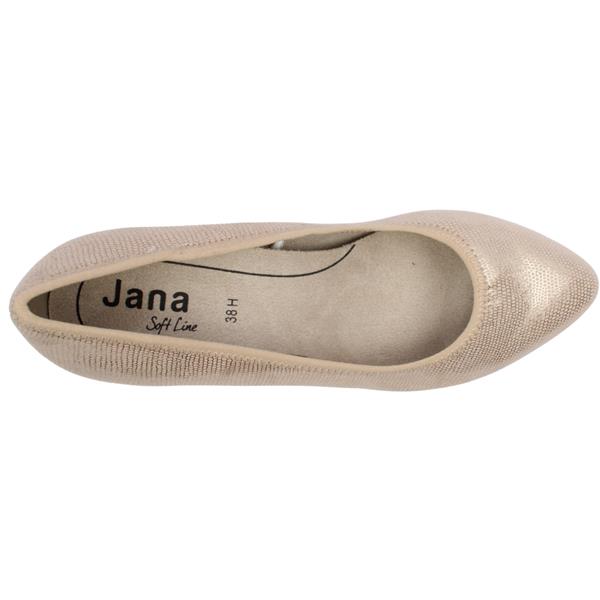 Brand: Jana Style: 22461 Colour: Beige Metallic Closure: Slip on Width: H Fitting Heel Height: Approx 5.5 cm Materials: Textile upper, textile lining & manmade sole