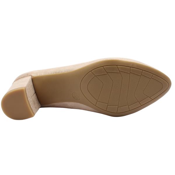Add a subtle touch of sparkle to your outfit with these wide fitting dressy shoes from Jana Shoes. This court shoe has a beige upper with a shimmer effect design. They feature a round toe and a sturdy block heel that provides stability and comfort making it suitable for all-day wear at a special occasion. The shoe is a H wide fitting style which will provide extra toe room, it also has a padded insole for added comfort.