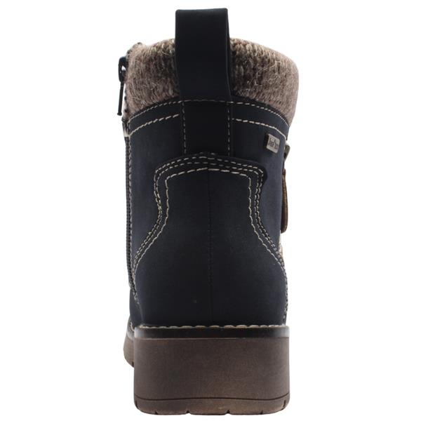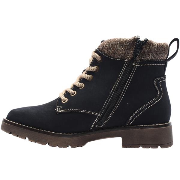 Step into everyday comfort with these womens boots from Jana shoes. A smooth navy Tex upper with a soft finish giving a versatile and contemporary look. Features a lace up front for a secure fit paired with a side zip for convenience. A faux outer zipper adds a trendy, decorative touch. The soft fabric collar around the ankle ensures a gentle, snug feel, while the plush fleece lining keeps feet warm and cozy. A durable chunky sole delivers stability and all day comfort.