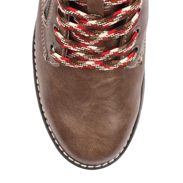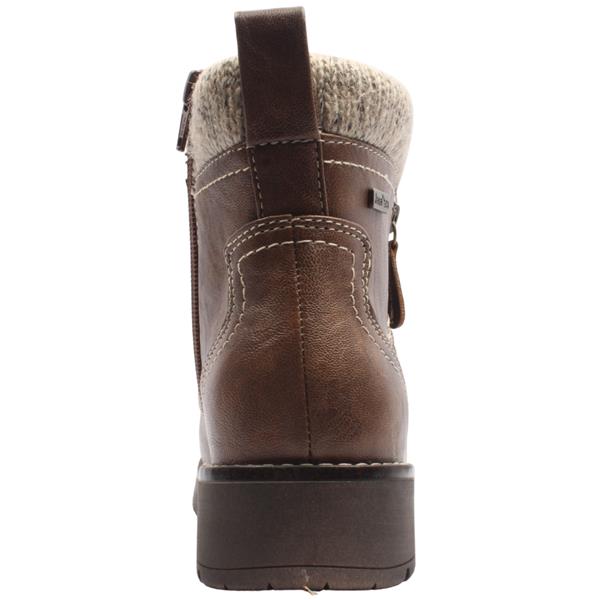 Step into everyday comfort with these wide fitting boots from Jana shoes. A smooth tan synthetic upper with a Tex lining to keep feet dry in showery weather. Features a lace up front for a secure fit paired with a side zip for convenience. A faux outer zipper adds a trendy, decorative touch. The soft fabric collar around the ankle ensures a gentle, snug feel, while the plush fleece lining keeps feet warm and cozy. A durable chunky sole delivers stability and all day comfort.