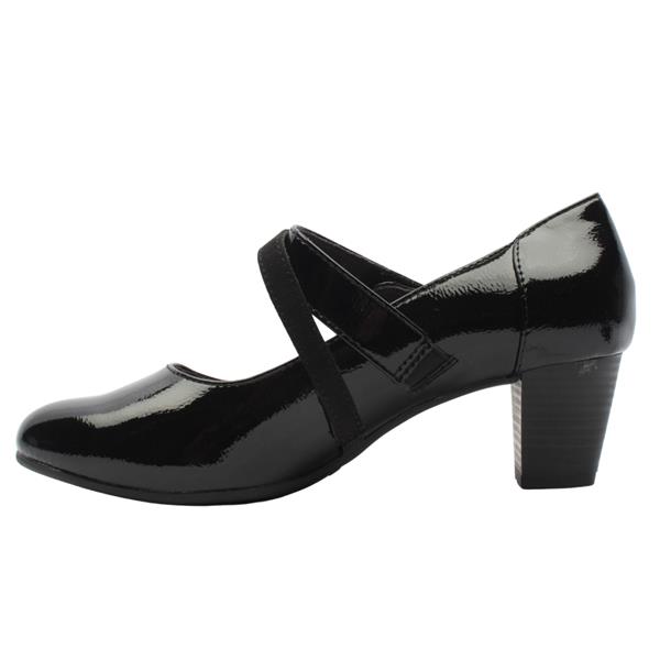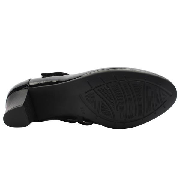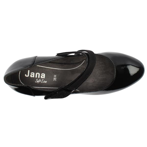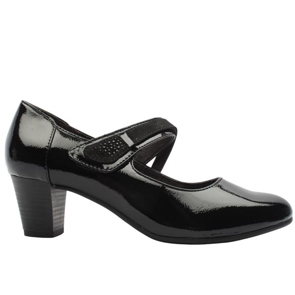Brand: Jana Style: 24465-43 Colour: Black Patent Closure: Velcro Strap Removeable Insole: No Heel Height: 4.5cm Width Fitting: H Extra Wide Fitting Materials: All Manmade