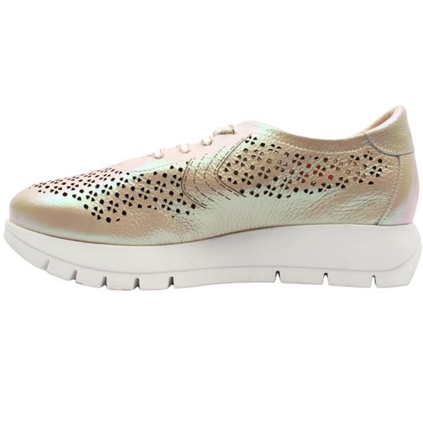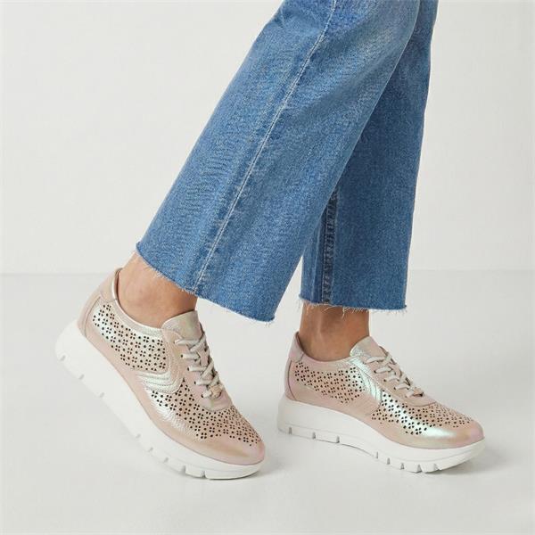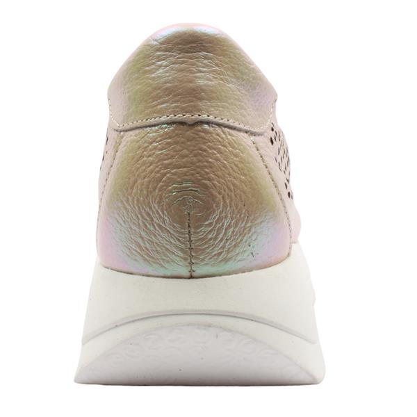The Jose Saenz Shoes, 2314 are a stylish shoe designed to make a subtle yet striking statement. Crafted in Spain, these shoes have a stunning rose iridescent leather upper that catches the light beautifully, adding a soft, eye-catching glow to any look. A distinctive laser cut perforation design enhances breathability while adding a refined, textured aesthetic. The classic lace closure ensures a secure and adjustable fit, making it ideal for all day wear. Blending style, comfort, and expert Spanish craftsmanship, the Jose Saenz 2314 is a versatile choice that effortlessly elevates casual outfits with a touch of understated shine.