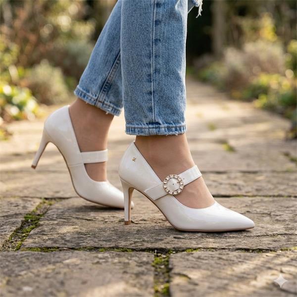 Step into effortless sophistication with the Kate Appleby Shoes, Kelshall in Cream Patent. Designed to combine polished style with everyday comfort, this elegant shoe features a sleek pointed toe that creates a refined silhouette perfect for both occasion wear and smart daytime outfits. Its decorative brooch detail, adding a touch of glamour and personality to the front of the shoe. The velcro strap closure offers a secure, adjustable fit while making it easy to slip on and off. Inside, a soft cushioned insole provides lasting comfort, allowing you to stay on your feet throughout the day or evening without sacrificing style.