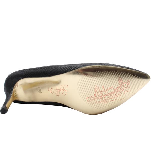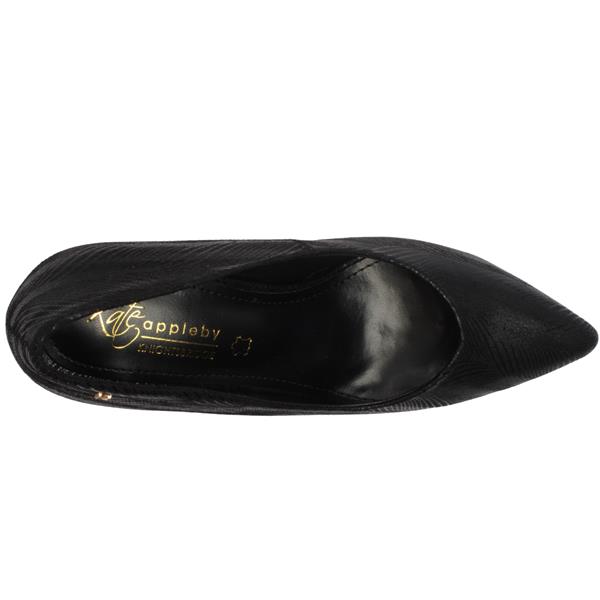 Striking black court shoes from Kate Appleby shoes. Designed with a pointed toe and a shimmering textured finish, they blend elegance with a modern twist. The 7.5cm heel provides an elegant lift while combined with the padded leather insole will add to their comfort, making them a versatile staple in your wardrobe to take you from day to night.