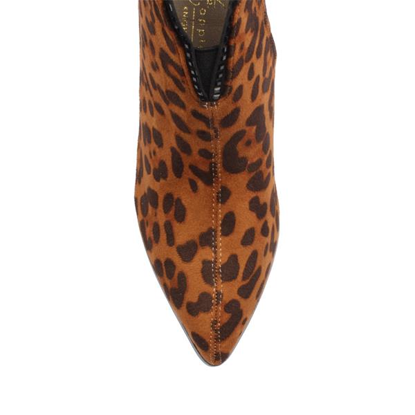 Step out in style with the Kate Appleby leopard print Boots. Designed to make a statement, these chic ankle boots feature a bold leopard print on faux soft suede upper. The pointed toe and a low cut design at the front of the boot elongate the leg. The mid block heel provides both height and comfort, while the gold trim detail at the heel adds a sophisticated finish. Perfect for pairing with jeans, skirts, or dresses, these Kate Appleby boots are a versatile choice for both day and evening wear.
