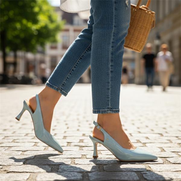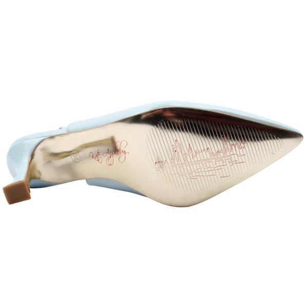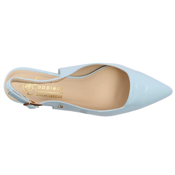 Step into effortless style with the Kate Appleby high heel sling backs. Crafted in a glossy patent sky blue upper, these heels instantly elevate any outfit with a fresh pop of color and a sleek, polished finish. Designed with a pointy toe, this silhouette elongates the leg for a flattering, streamlined look. The elegant sling back strap offers a secure fit. Whether paired with tailored trousers, a chic midi dress, or your favorite occasion wear, the Kate Appleby shoes deliver confident style with every step.