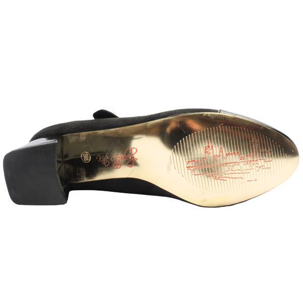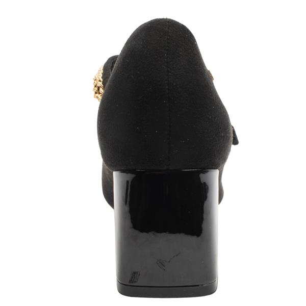 Elevate your outfit with these elegant Kate Appleby court shoes. Crafted in a luxurious black faux suede-effect finish, these heels feature a sleek patent toe cap and matching block heel for a refined contrast. The standout detail is the gold-tone chain strap across the instep, adorned with a statement pearl button effect on the velcro strap closure, offering both glamour and sophistication. Designed with comfort and stability in mind, the mid-height block heel ensures all-day wearability without compromising on style. Perfect for both day-to-night looks, these shoes pair beautifully with dresses, skirts, or tailored trousers.
