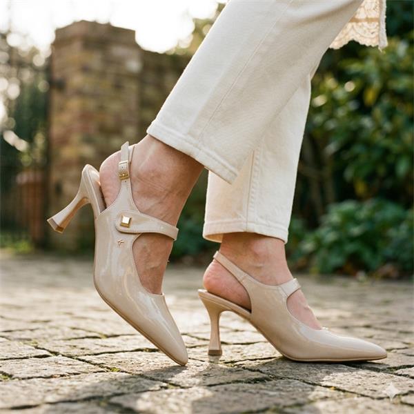 Stylish, and effortlessly chic, the Kate Appleby Shoes, style Parciau is the perfect blend of elegance and convenience. Featuring a glossy nude patent upper, this sophisticated slingback design adds a polished touch to any outfit. The Velcro closure ensures an easy, secure fit, making it a go-to choice for all-day wear.Whether you are dressing up for an occasion or adding a refined edge to your office look, the Parciau offers both comfort and timeless style in one versatile shoe.
