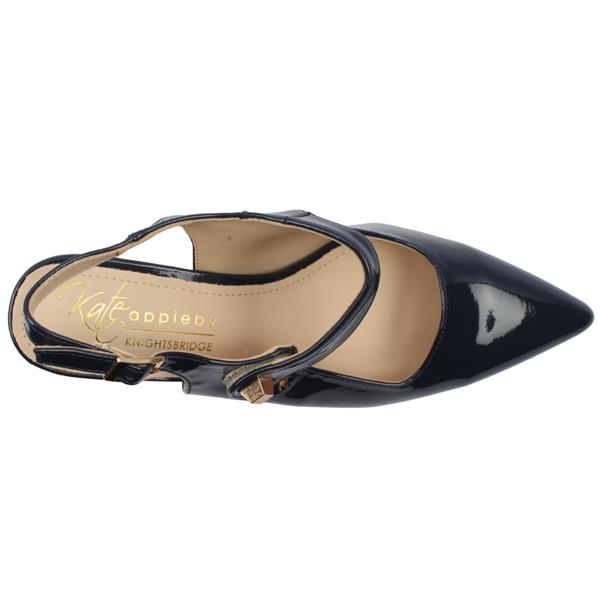 Stylish, and effortlessly chic, the Kate Appleby Shoes, style Parciau is the perfect blend of elegance and convenience. Featuring a glossy navy patent upper, this sophisticated slingback design adds a polished touch to any outfit. The Velcro closure ensures an easy, secure fit, making it a go-to choice for all-day wear.Whether you're dressing up for an occasion or adding a refined edge to your office look, the Parciau offers both comfort and timeless style in one versatile shoe.