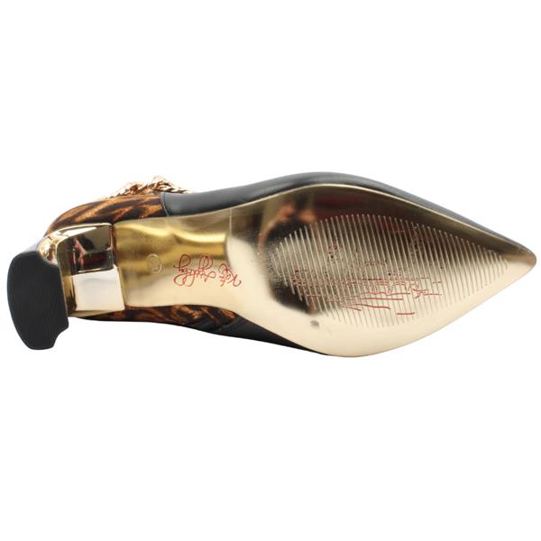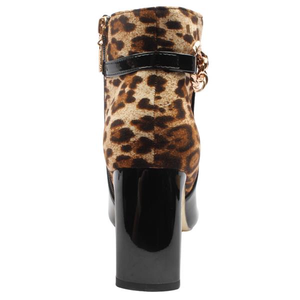 Make a statement with these striking ladies ankle boots from the Kate Appleby shoes collection. Designed in sleek black with a bold leopard-print back panel, they bring effortless glamour to any outfit. The gold-tone twisted link detail and block heel add a touch of luxe, while the pointed toe creates a chic, elongated silhouette. Perfect for evenings out or elevating everyday looks, these Kate Appleby boots combine contemporary style with timeless sophistication.