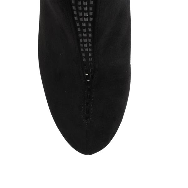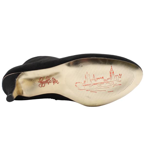 Add a touch of sophistication to your footwear collection with these chic Kate Appleby boots. Crafted from a soft black faux suede upper, they feature a flattering V-cut design that elongates the leg, while the black embellishment down the front of the boot adds a stylish pop of contrast.Perfect for pairing with jeans, skirts, or dresses, these boots offer both comfort and elegance for day-to-night wear.