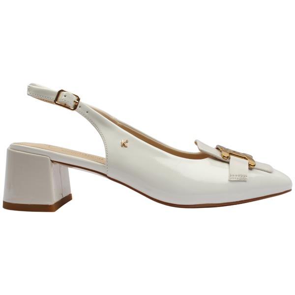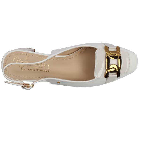 Elevate your everyday elegance with the Kate Appleby Bickley in an off-white patent. A versatile addition to your wardrobe. The stylish gold buckle feature on the front adds a touch of polished sophistication, while the adjustable slingback strap ensures a secure and personalised fit. Set on a comfortable block heel, the Bickley offers both stability and effortless wear.