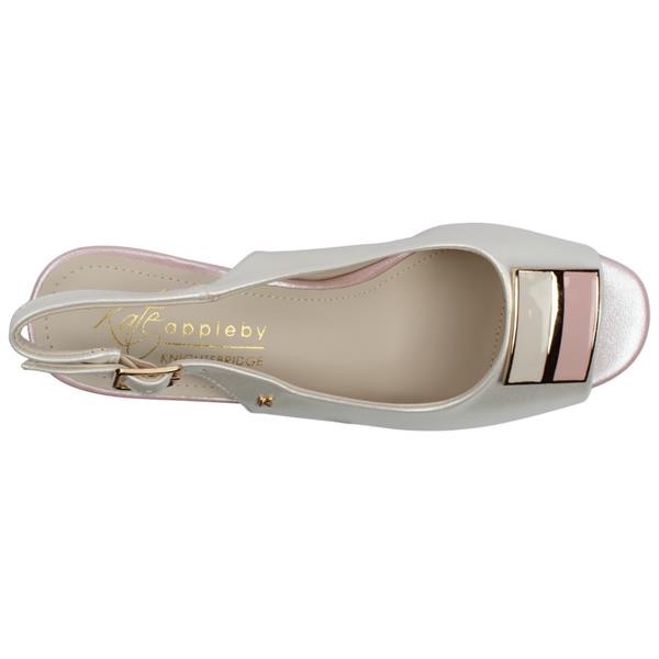 Brand: Kate Appleby Style: Sunderland Colour: Pearl Closure: Slip on with adjustable sling back strap. Removable Insole: No Heel Height: Approx. 6.5cm Materials: All Manmade