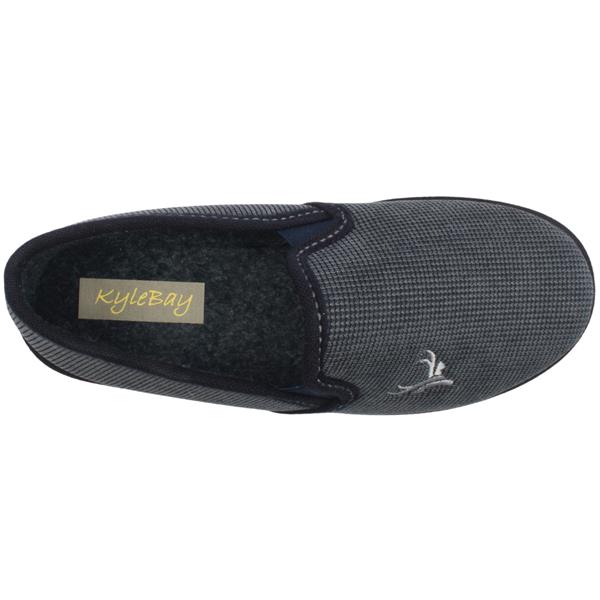 Mens slippers from Kylebay shoes. Double side gussets offering flexibility and comfort. Fleece lining allowing optimal comfort and warmth all day.
