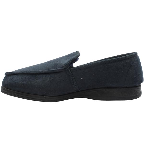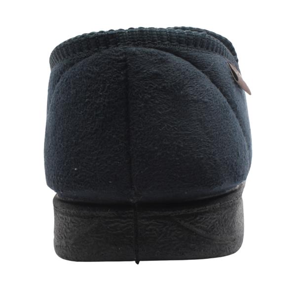 Cosy Mens Slippers from Lazy Dogs, designed with comfort in mind! The upper is faux suede in navy blue while the lining is cosy textile. The luxuriously padded memory foam insole offers relief to tired feet.