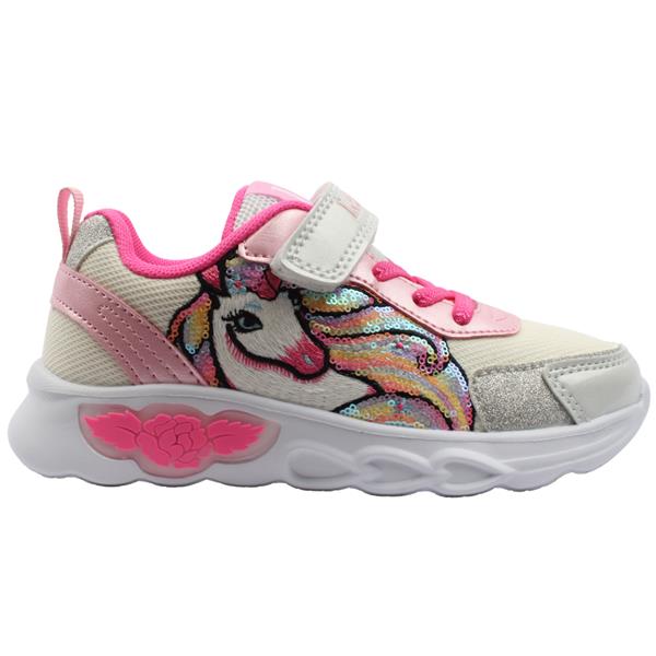 Add a touch of magic to every step with girls runners from Lelli Kelly shoes. Designed for comfort and play the runner boasts a light up sole that flashes with every step. The Velcro closure ensures easy on and off. The elasticated sole provides a snug yet flexible fit for active feet. Perfect for school, playdates or weekend adventures