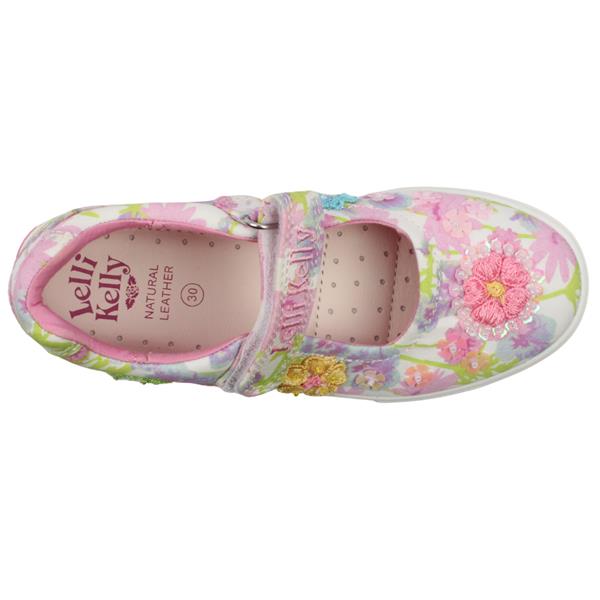 Brand: Lelli Kelly Style: LKED4911 Eloise Colour: White Multi Closure: Velcro Removable Insole: Yes Heel Height: Approx. 3cm Materials: Textile Upper, lining & Manmade Outsole.