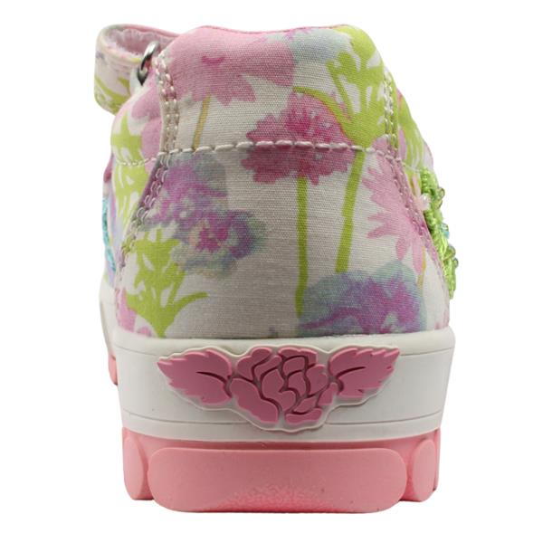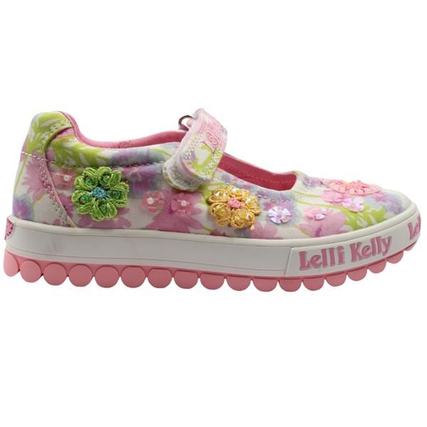 Add a touch of charm to every outfit with these cute girls shoes from Lelli Kelly shoes. The Velcro closure allows for easy on and off. The open upper design keeps little feet cool and comfortable during warmer days. The embroidered flowers and subtle sparkle combines playful style with everyday wearability.