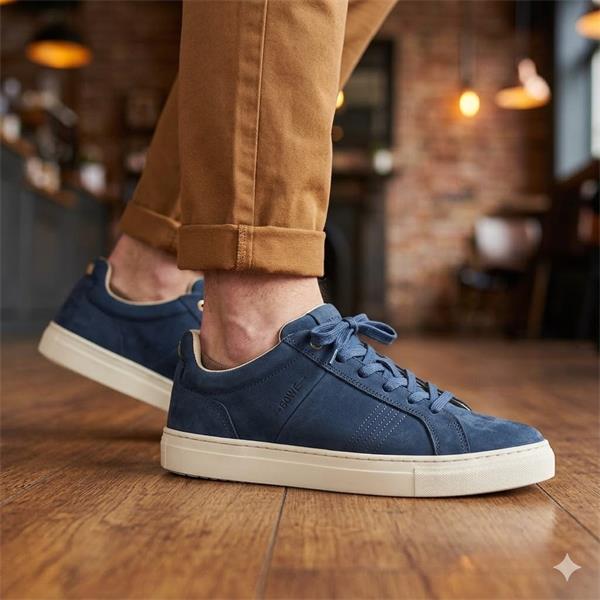 Mens Lloyd & Pryce casual shoes. Crafted with a premium navy leather upper this style offers a warm and versatile finish. The lace up closure ensures a secure and adjustable fit. Inside a removable insole adds practical comfort and flexibility. Fine line stitching across the upper highlights the shoes craftsmanship adding understated structure and visual interest.