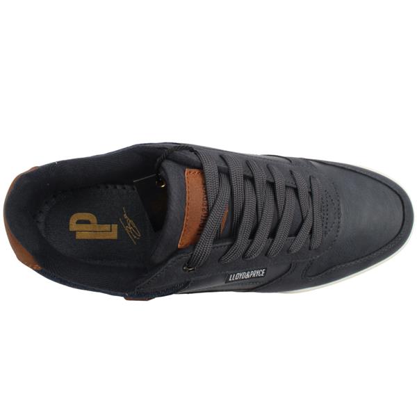 Mens casual shoes from Lloyd & Pryce shoes. These shoes feature a sleek navy upper complemented by a contrasting tan heel for a modern, versatile look. Expertly crafted with fine stitching, they combine durability with subtle sophistication. The soft fabric lining at the heel ensures a comfortable fit, while the classic lace up closure offers secure support.