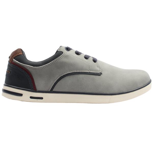 Men's casual shoes from Lloyd & Pryce shoes by Tommy bowe. Perfect for a day in the office or a day out. Designed with a grey upper, featuring red and navy outlines. Pair these shoes with chinos and jeans.