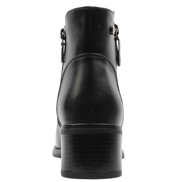 Step out in timeless style with this elegant women’s ankle boot from Lunar shoes. The design includes a practical side zip for easy on/off, complemented by an outside decorative zip on the opposite side for a touch of understated detail. A comfortable block heel and classic round toe ensure a flattering silhouette and all-day wearability. Pair them with trousers, skirts, or dresses for a polished look.