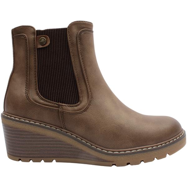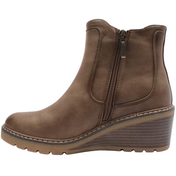 Step into effortless style with these womens wedge boots from Lunar shoes. Crafted with a rich brown upper, this versatile boot is designed with a side zip for easy on and off wear and a subtle gusset for added comfort and flexibility.The wedge heel provides a touch of height while keeping you supported throughout the day.