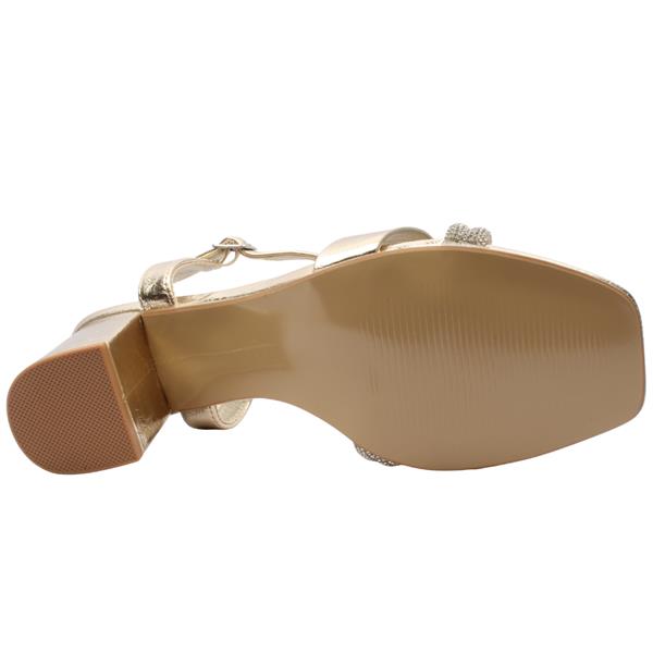Add a touch of glamour to warm summer nights with the Jodi Sandals from Lunar Shoes. Designed with metallic gold straps, sparkling details, and a chic block heel, these dressy gold sandals combine classy sophistication with all day wearability. A secure ankle buckle keeps the fit just right, making it ideal for weddings, parties, or simply elevating your outfit.