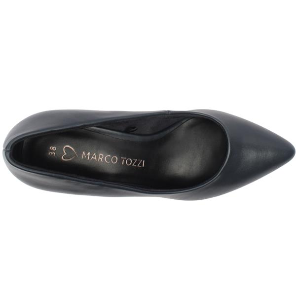 Classic court shoes from Marco Tozzi shoes in a matte black upper. Designed with a medium heel and pointed toe to elongate the leg. These stylish heels are perfect formal or special occasions. Complete with padded insoles for added comfort.