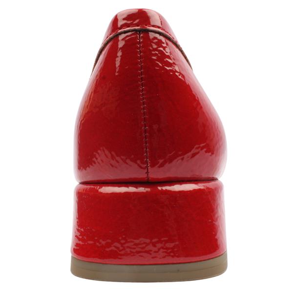 Stylish ladies loafers from Marco Tozzi Shoes in a vibrant red patent finish with a gold buckle detail adding a subtle, eye-catching accent. A padded leather insole adds to the comfort of these shoes. The ANTIshokk technology in the heel noticeably relieves pressure on your back and joints by effectively absorbing shock as you walk ideal for long days on your feet. A versatile transitional shoe that combines style and comfort with ease, perfect for pairing with skirts, trousers or dresses.