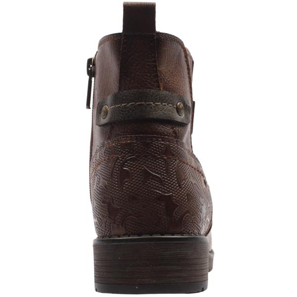 Step out in style with these womens ankle boots from Mustang shoes. Features a side zip for easy on and off complemented by an outer gusset that enhances both flexibility and fit. A soft fleecy lining and insole provide cozy warmth and lasting comfort. The elevated heel delivers a flattering boost while maintaining stability for all day wear.